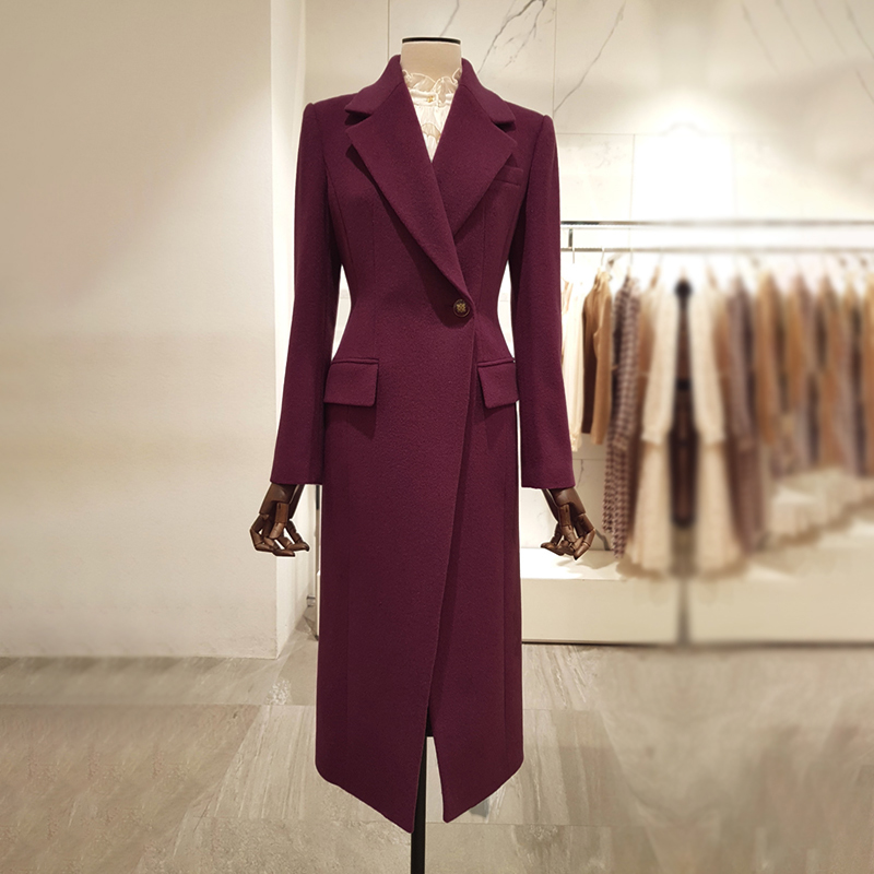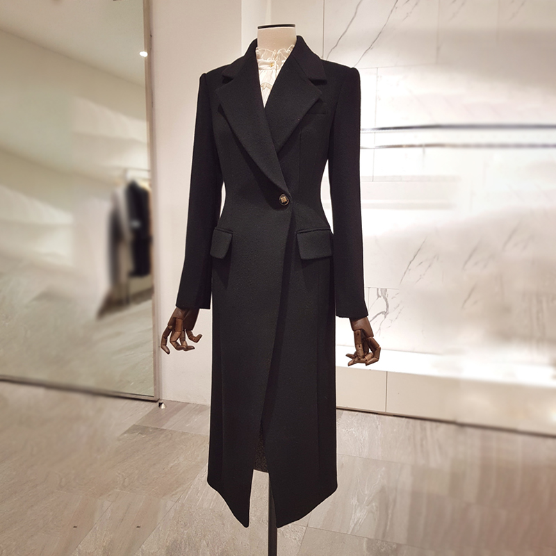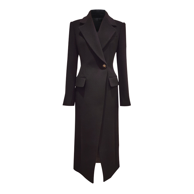 2025秋冬新款通勤西装毛呢外套一粒扣修身中长款过膝毛呢大衣女冬