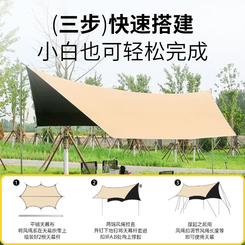 洋公子黑胶天幕帐篷户外2025新款便携防雨防晒速开野餐露营遮阳棚