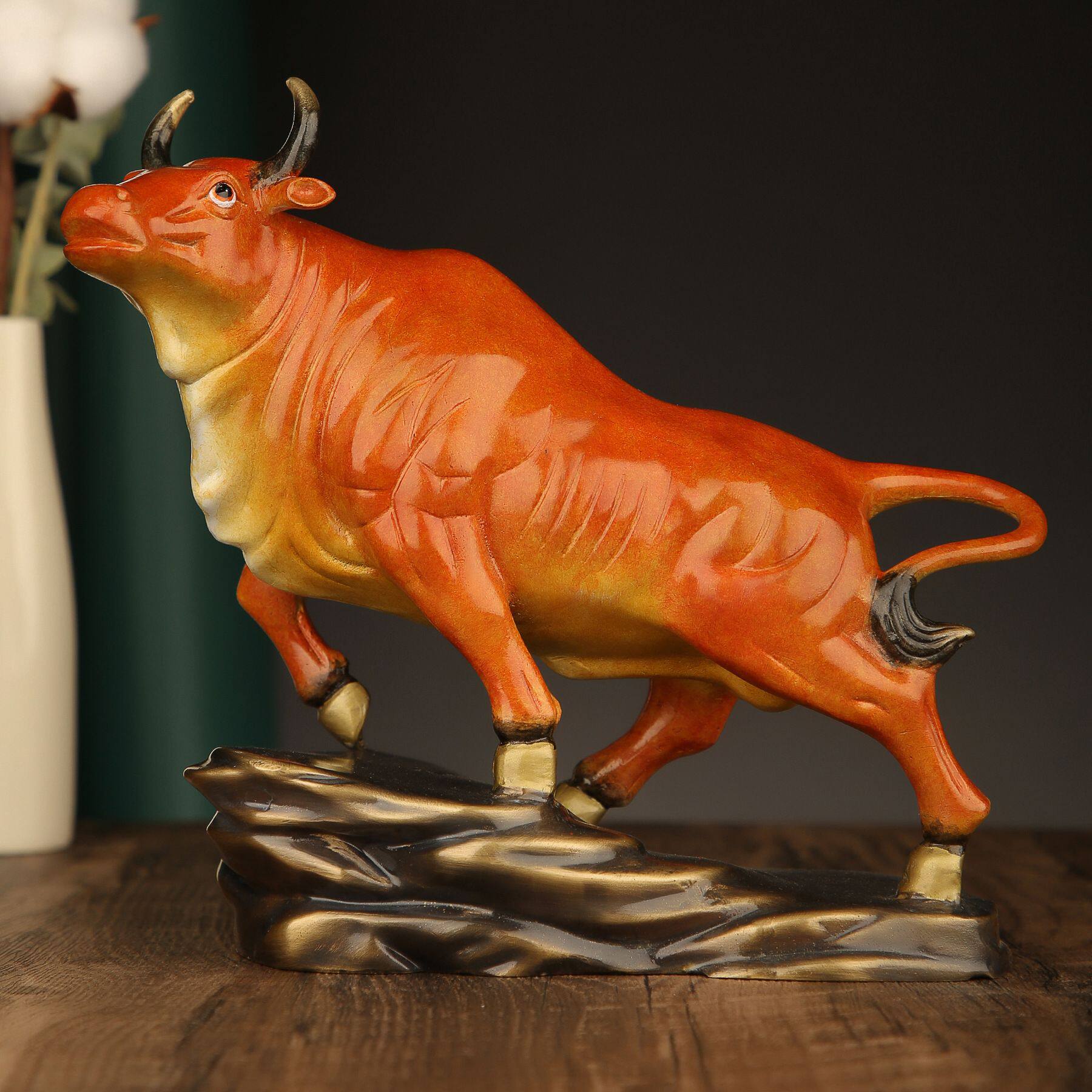 厂家批发铜牛摆件华尔街旺市金股市炒股办公桌铜制工艺礼品生肖