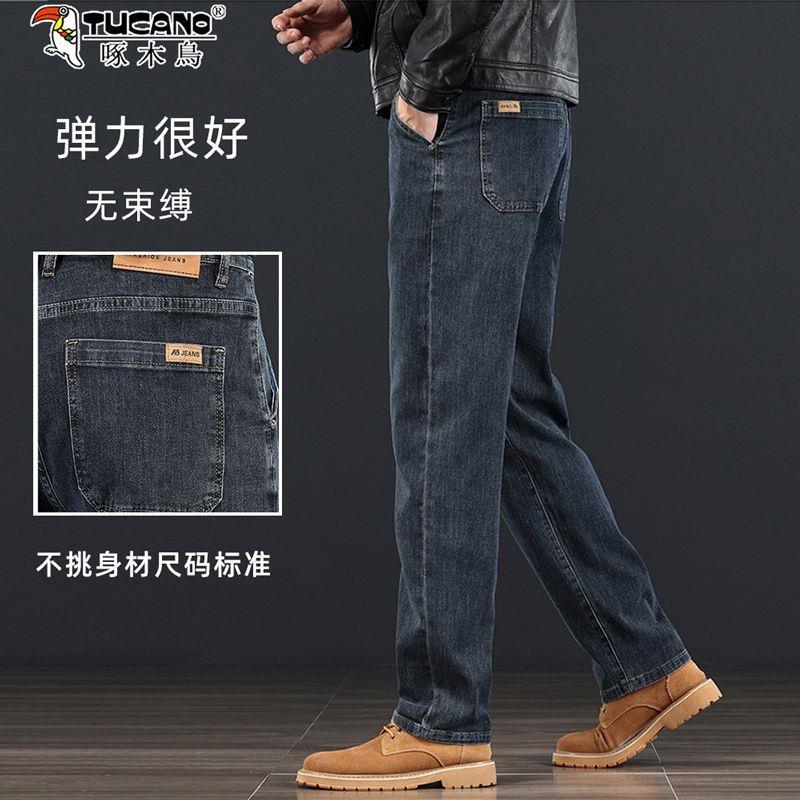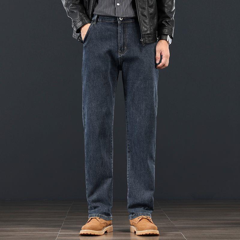 高端牛仔裤男士弹力窄版直筒宽松2024新款阔腿秋冬款男休闲裤子