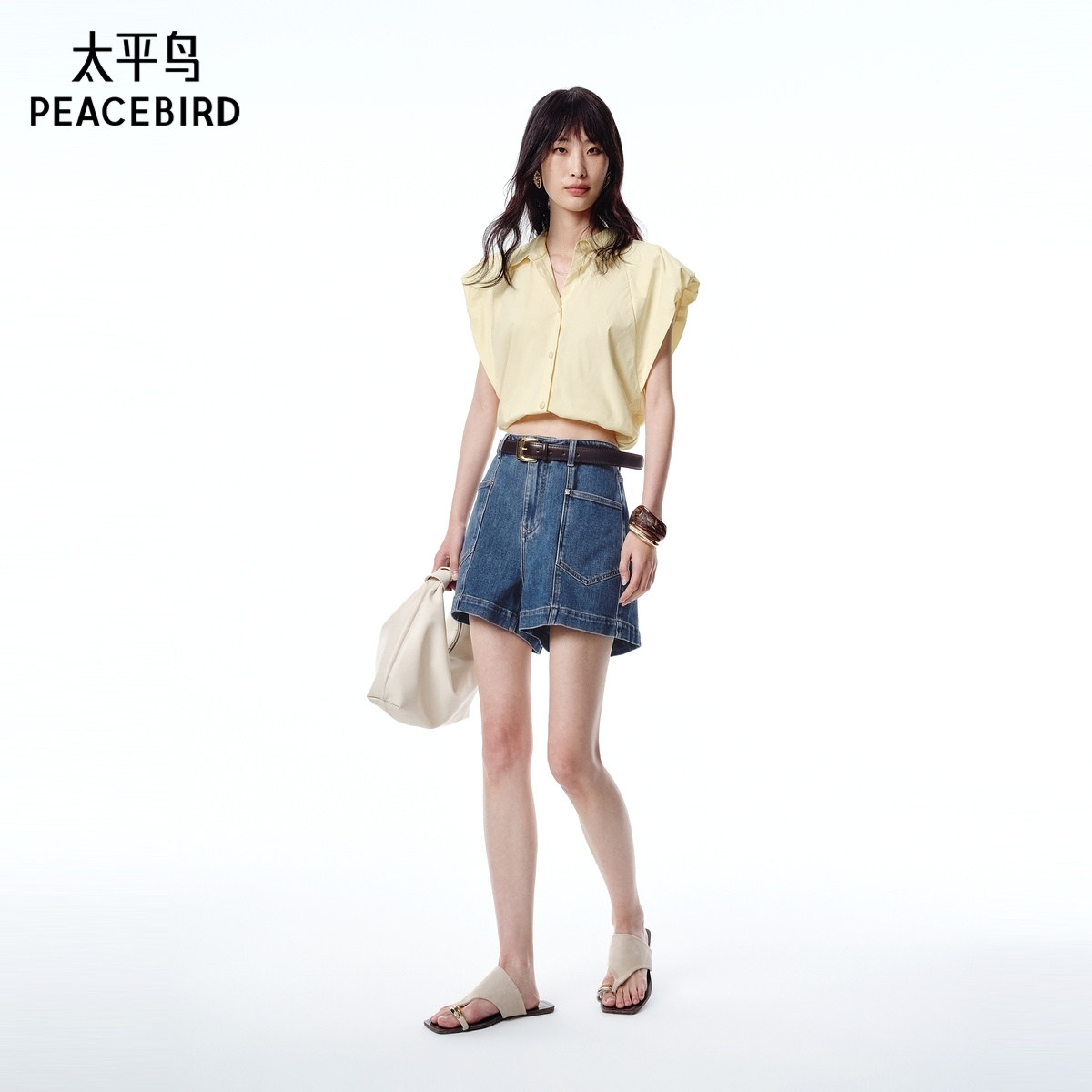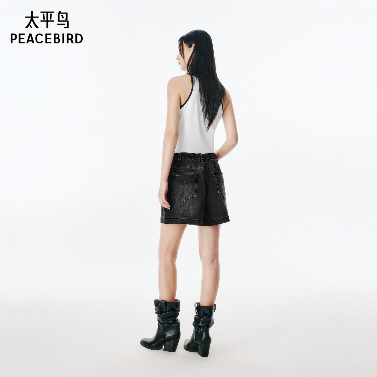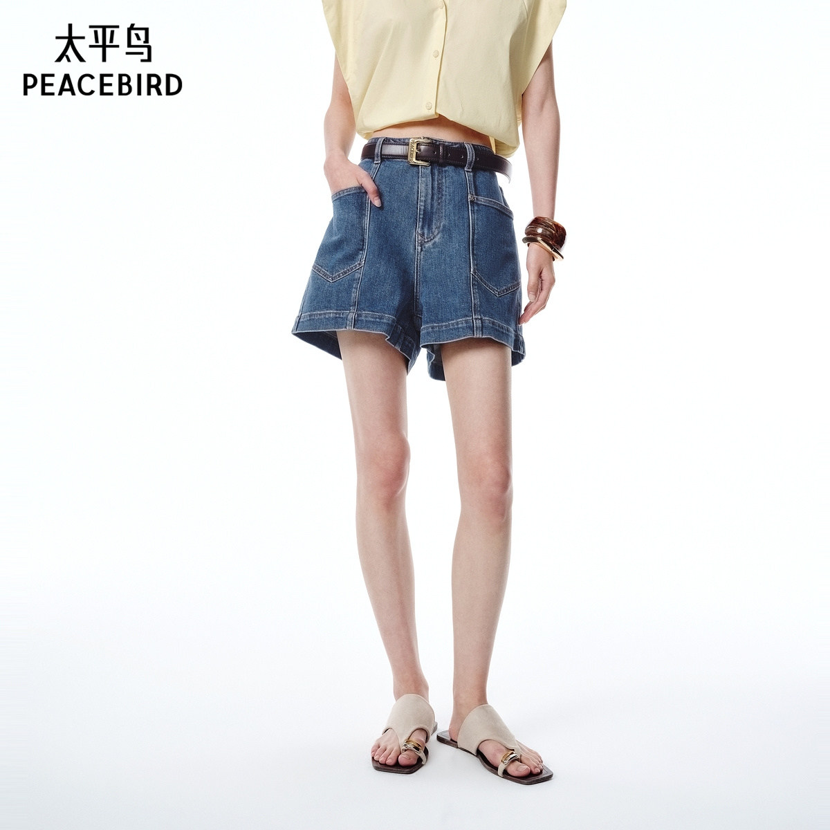 太平鸟女装夏季高腰显瘦棉感A字牛仔短裤A1HBF2533