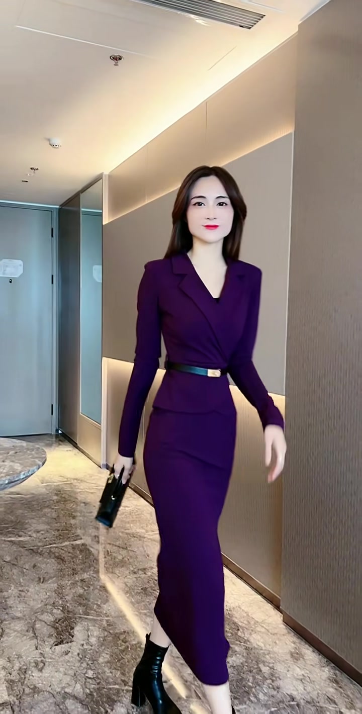 网红爆款时尚气质高档套装女2023冬季新款收腰显瘦外套高腰开叉裙