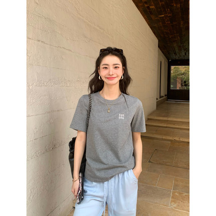pusumede 经典色系 圆领短袖t恤女夏季百搭宽松简约纯棉针织上衣