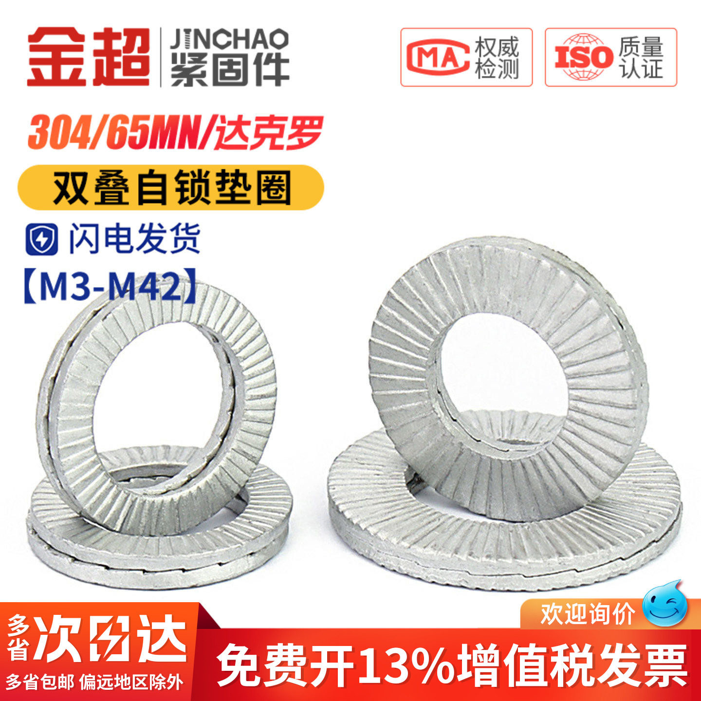 304不锈钢DIN25201双叠自锁防松垫圈65锰嵌入式锁紧垫片双面齿层