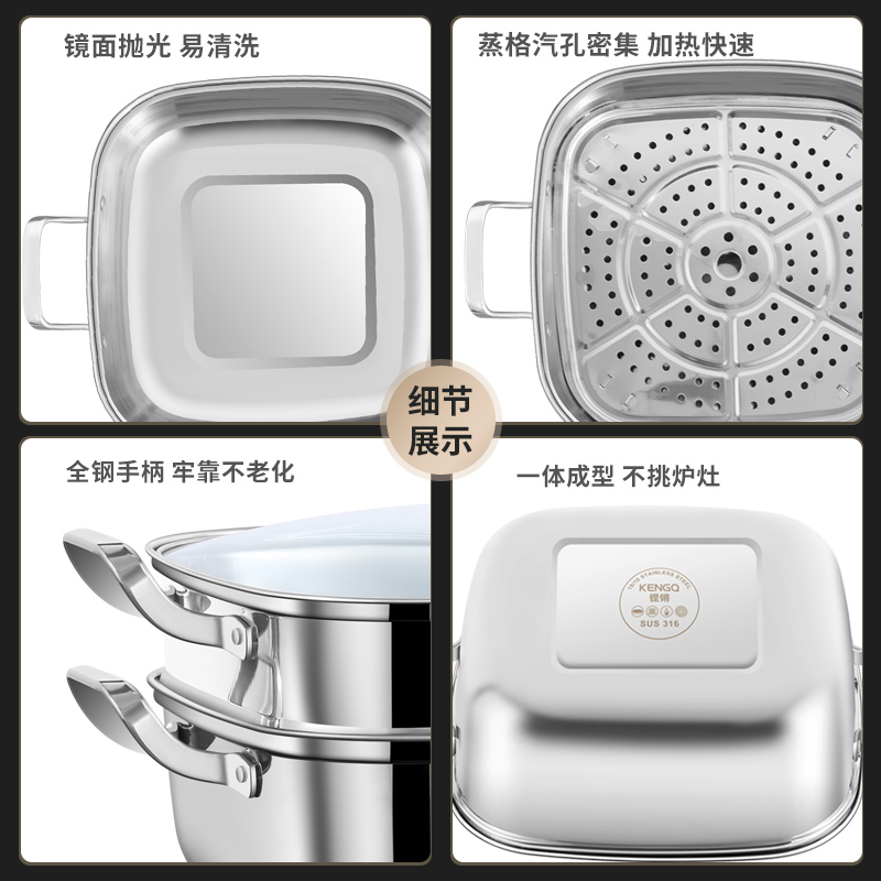 方形蒸锅家用316不锈钢x加厚双层三层蒸笼蒸屉燃气电磁炉通用