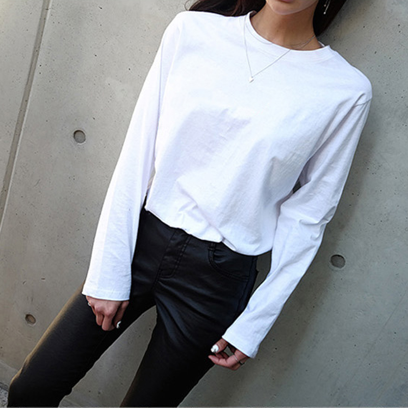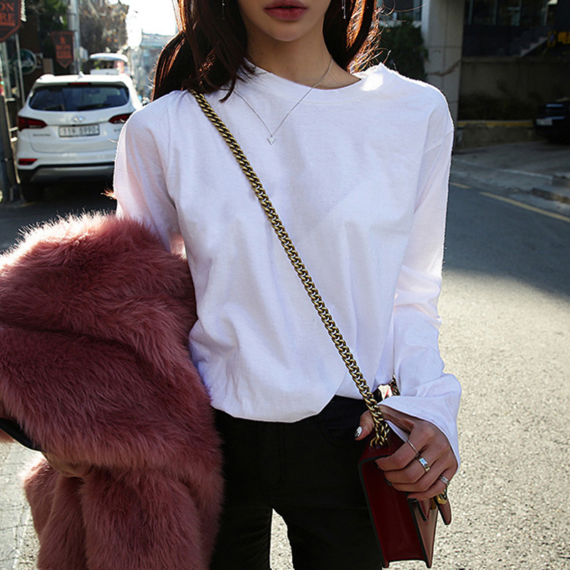 白色T恤女长袖2025春秋冬新款叠穿宽松体恤纯棉上衣内搭打底衫ins