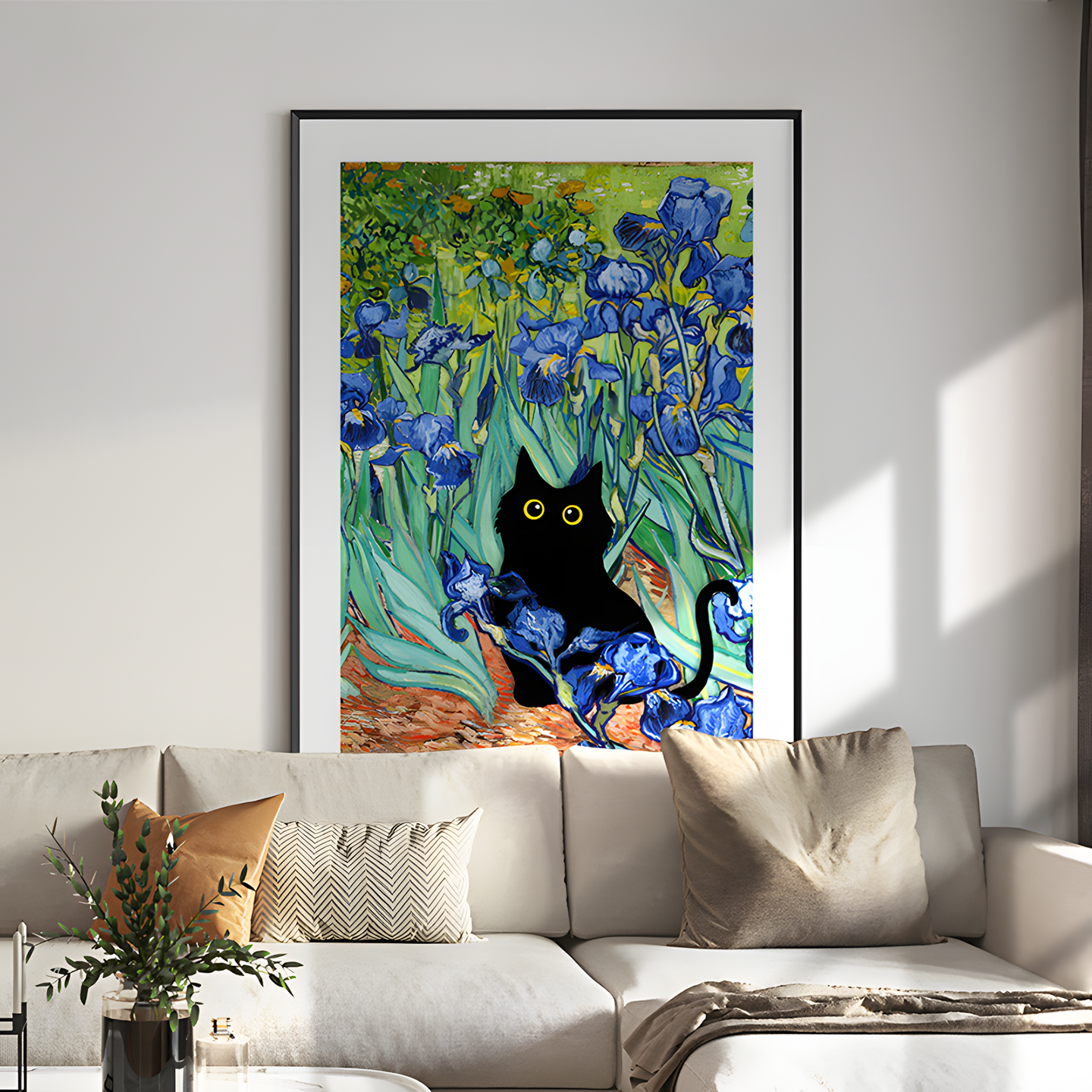 ZOYART 当小黑猫闯入名画 搞怪趣味装饰画现代小众艺术客厅挂画