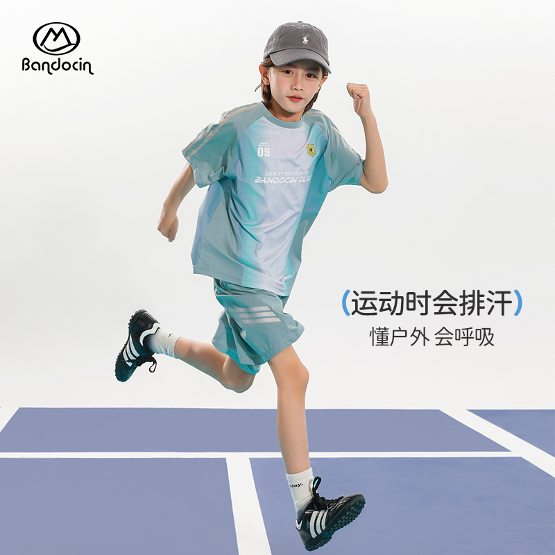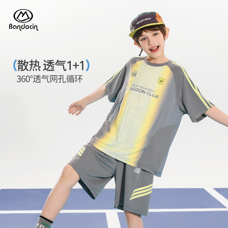 【篮球套装】半度闲男童凉感运动套装夏季薄款儿童夏装短袖两件套