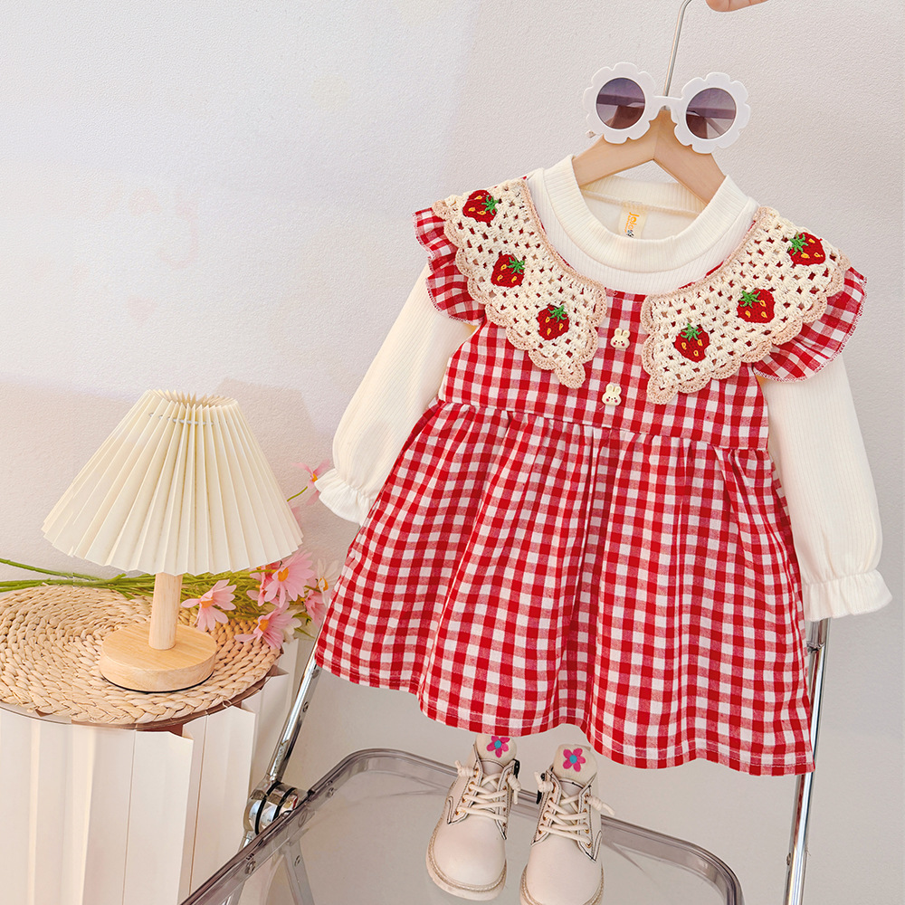 甜美女宝裙子娃娃领连衣裙童装春秋季长袖新款一岁女童洋气公主裙