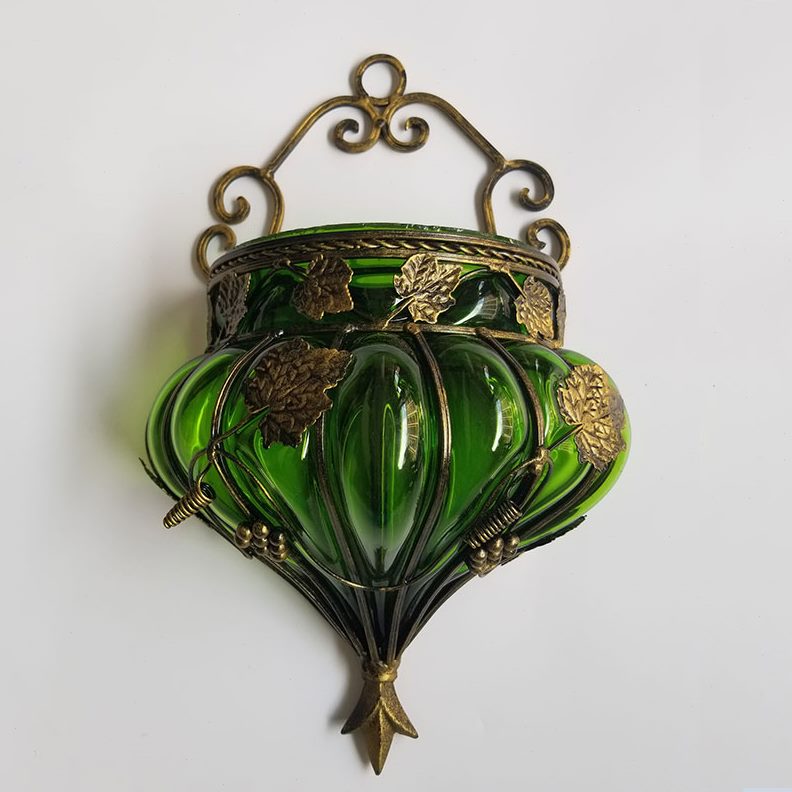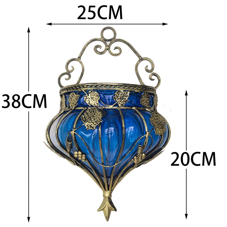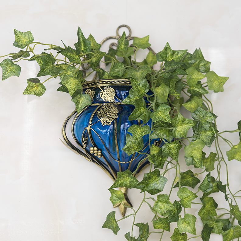 玻璃花瓶绿色绿萝铁艺壁饰壁挂 人工美式复古挂墙装饰水培吹制
