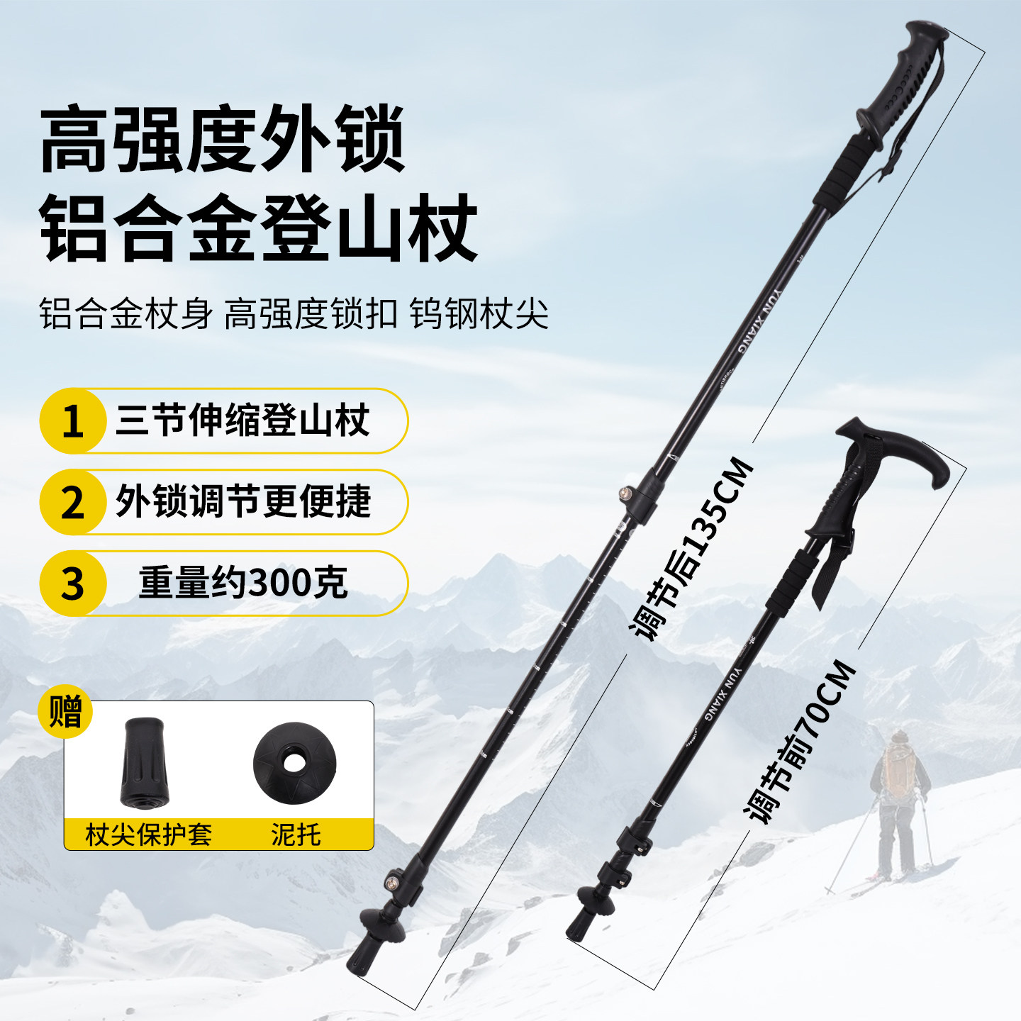 运祥牌高强度外锁铝合金登山杖伸缩卡扣男女户外专业防滑登山爬山