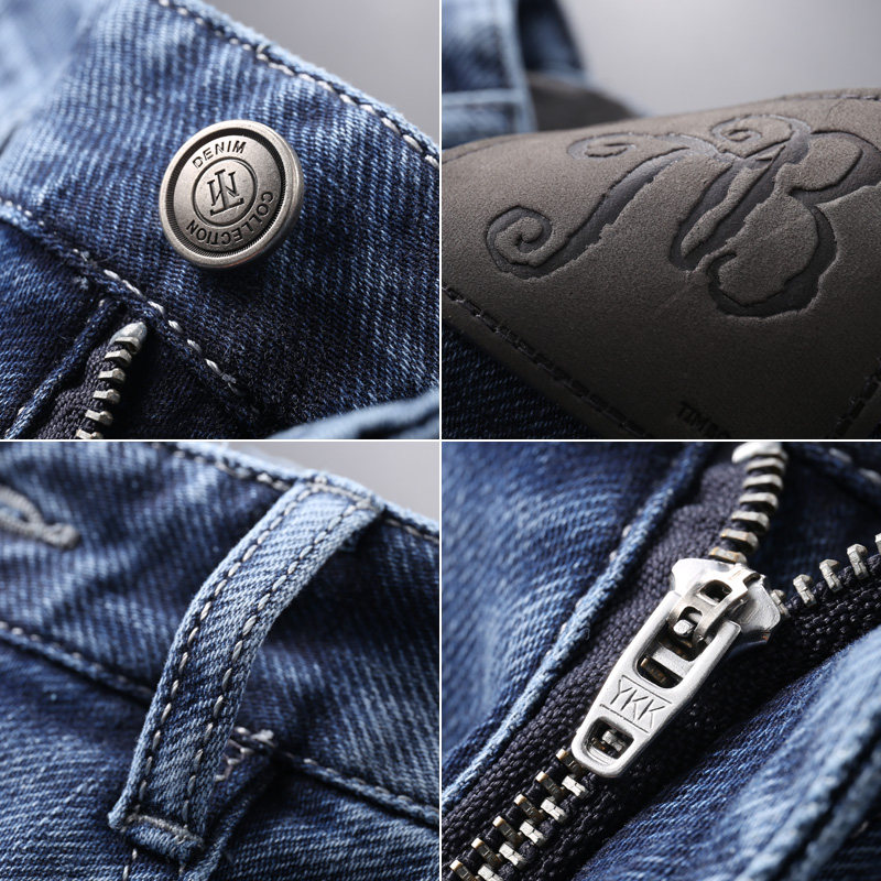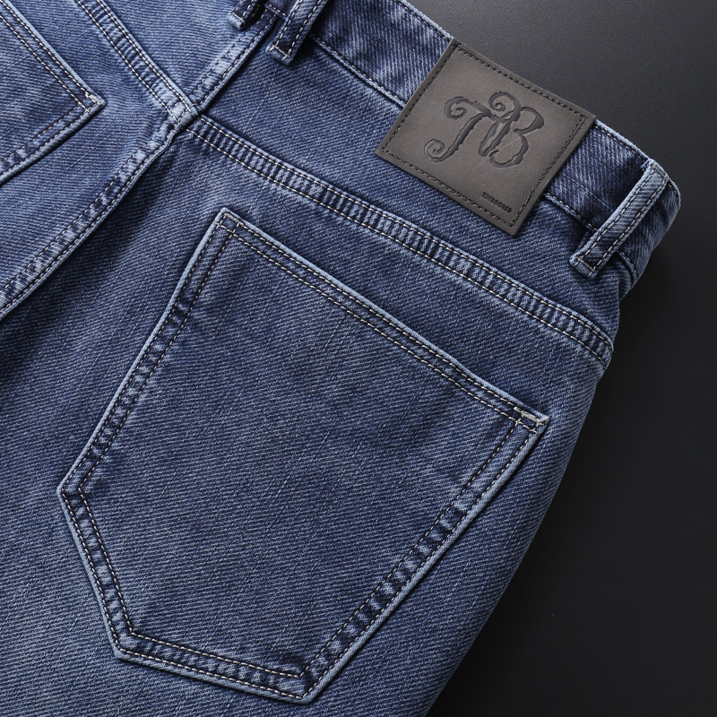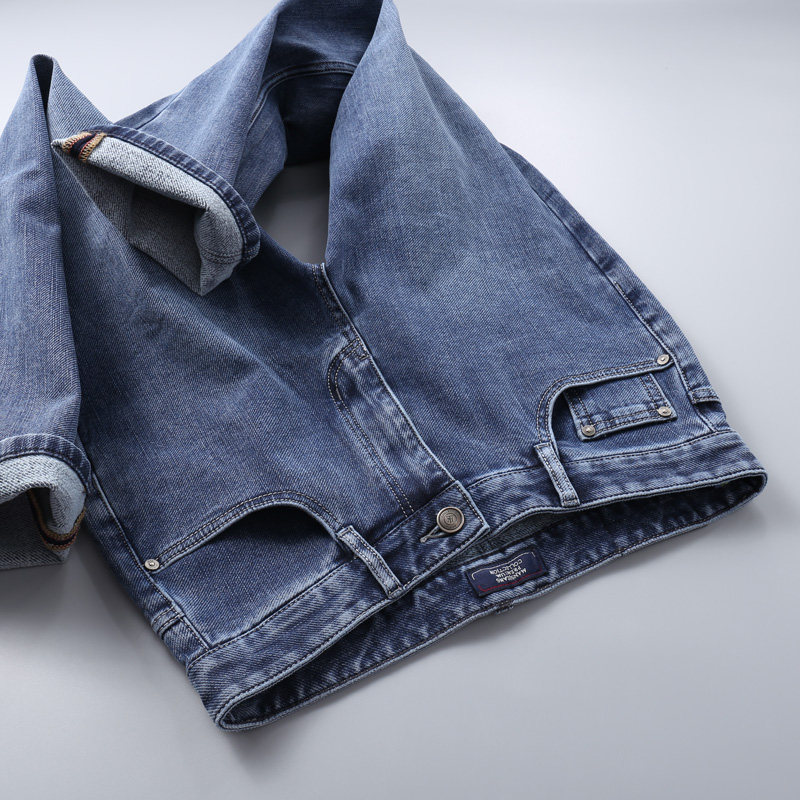 梵默超柔纱水洗蓝色男舒适牛仔裤