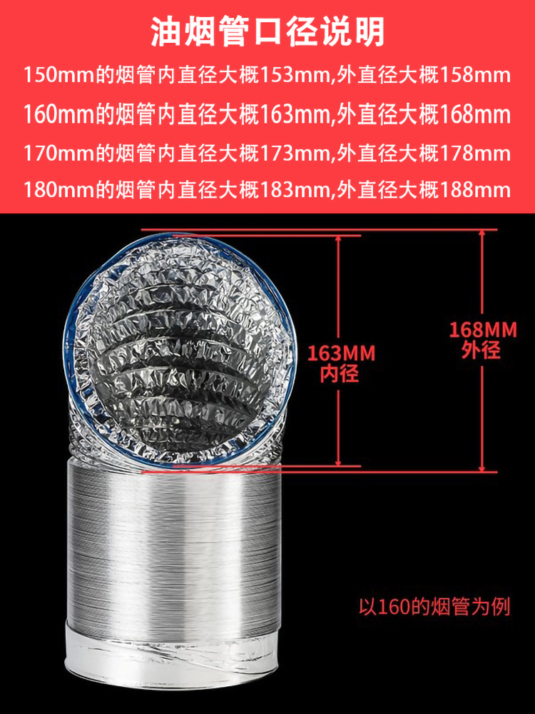 厨房吸抽油烟机排烟管排风管铝箔烟管加厚排气管道伸缩通风管软管