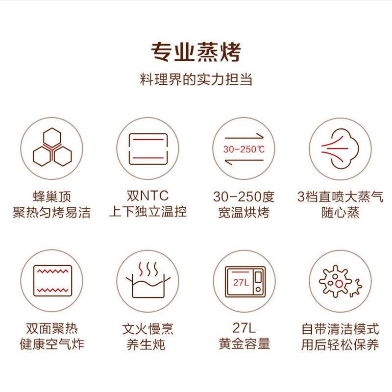 松下蒸烤箱蒸烤炸一体机27L容量