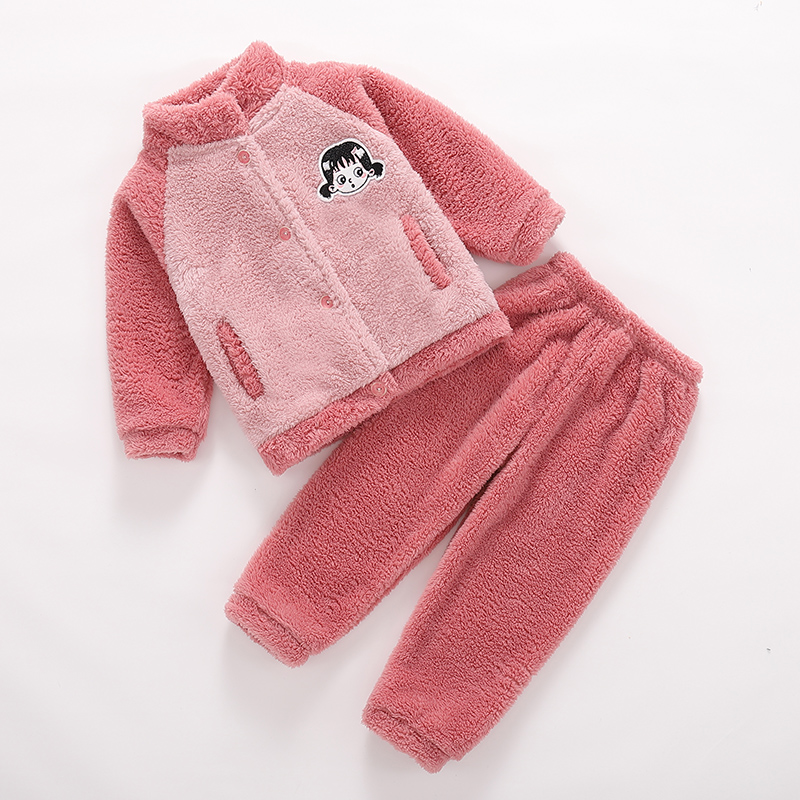 秋冬季男童珊瑚绒女童男孩宝宝小孩加厚冬款儿童睡衣法兰绒家居服