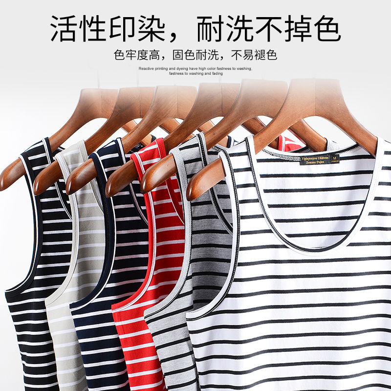 男士背心夏季圆领领透气条纹无袖坎肩健身运动休闲纯棉打底衫潮牌