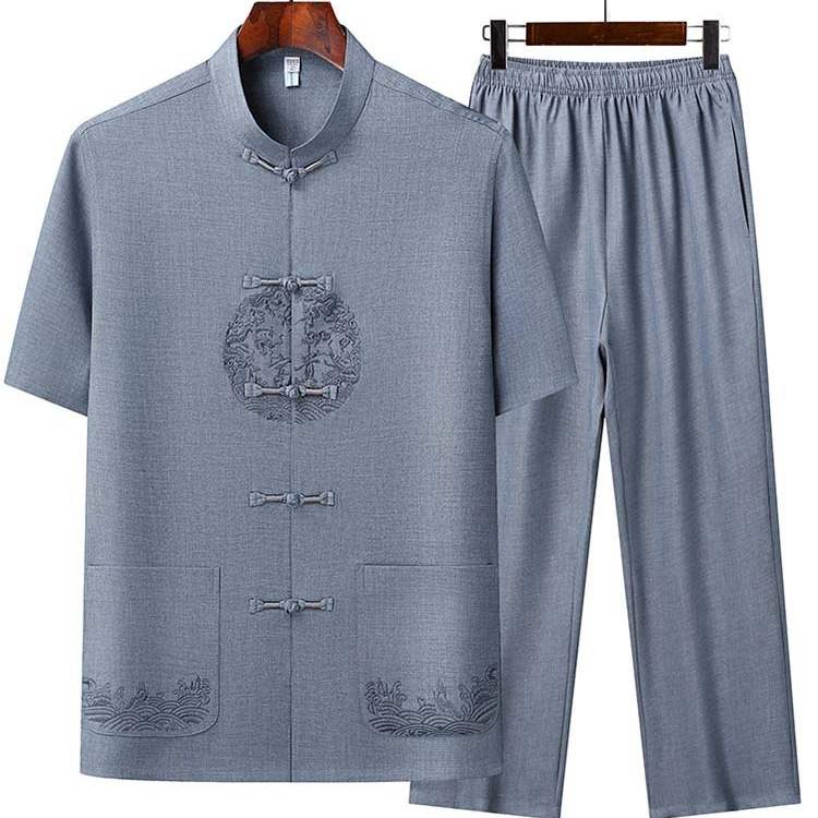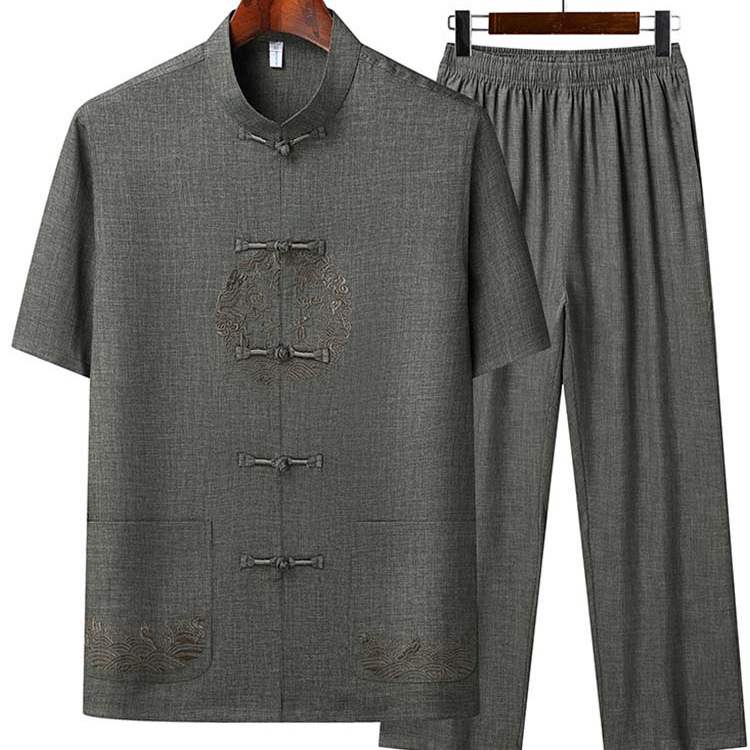 唐装男中老年人爸爸装夏装套装中国风中式休闲爷爷夏季短袖两件套