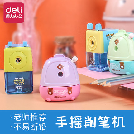得力削笔器手摇铅笔刀学生用卷笔刀多功能刨旋绞小学生转笔刀新款
