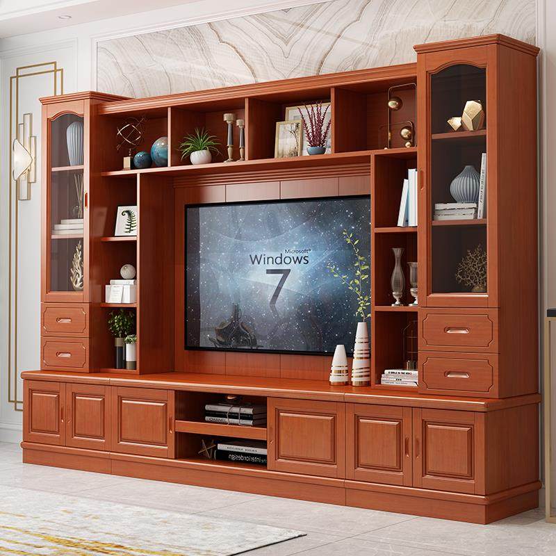 实木电视柜组合墙柜中式客厅多功能储物背景柜现代简约组装影视柜