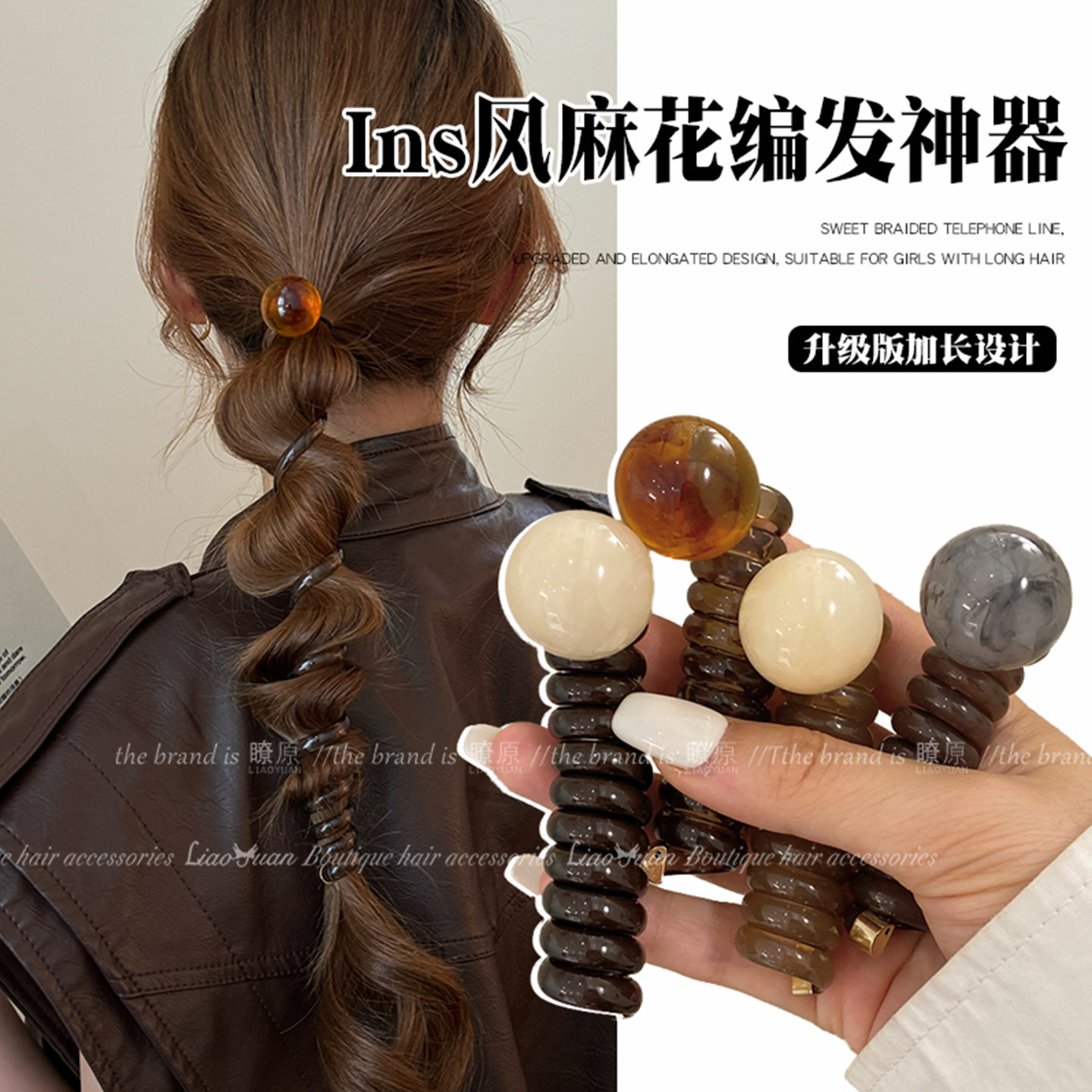 复古简约泡泡辫头绳女2025新款高级感发饰气质马尾编发电话线发圈
