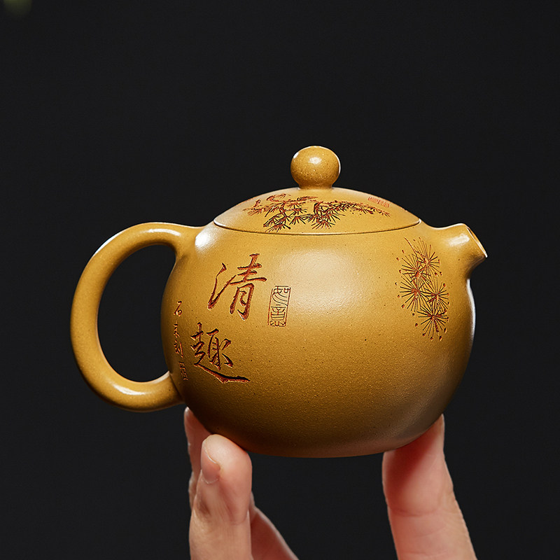 宜兴紫砂壶纯全手工单壶刻松鼠西施壶名家黄金段小泡茶壶功夫茶具