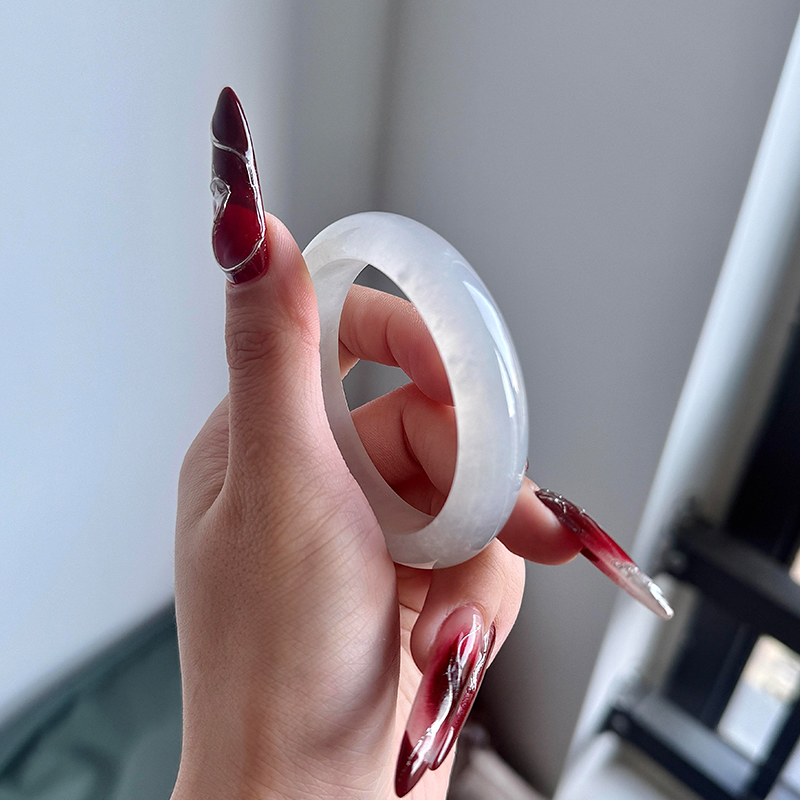 "风吟浅岸"缅甸高端翡翠飘花玉手镯子女款正品贵妃镯冰种玉石处理