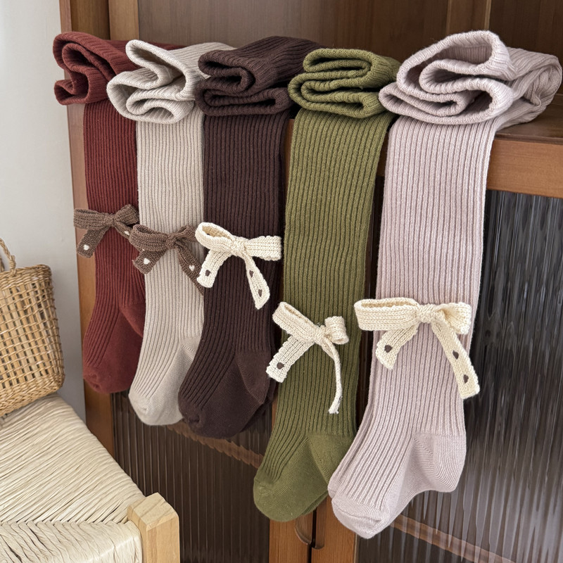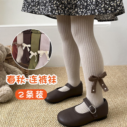 女童韩版春秋季薄款连裤袜子儿童针织棉公主蝴蝶结打底裤宝宝洋气