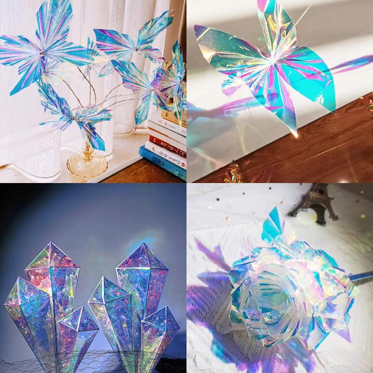 镭射纸炫彩膜环创手工摄影装饰创意艺术七彩色幻彩透明玻璃纸贴膜