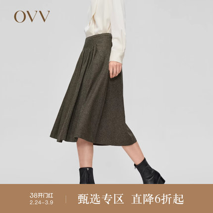 OVV秋冬新款女装花纹设计A字伞裙中长款半身裙