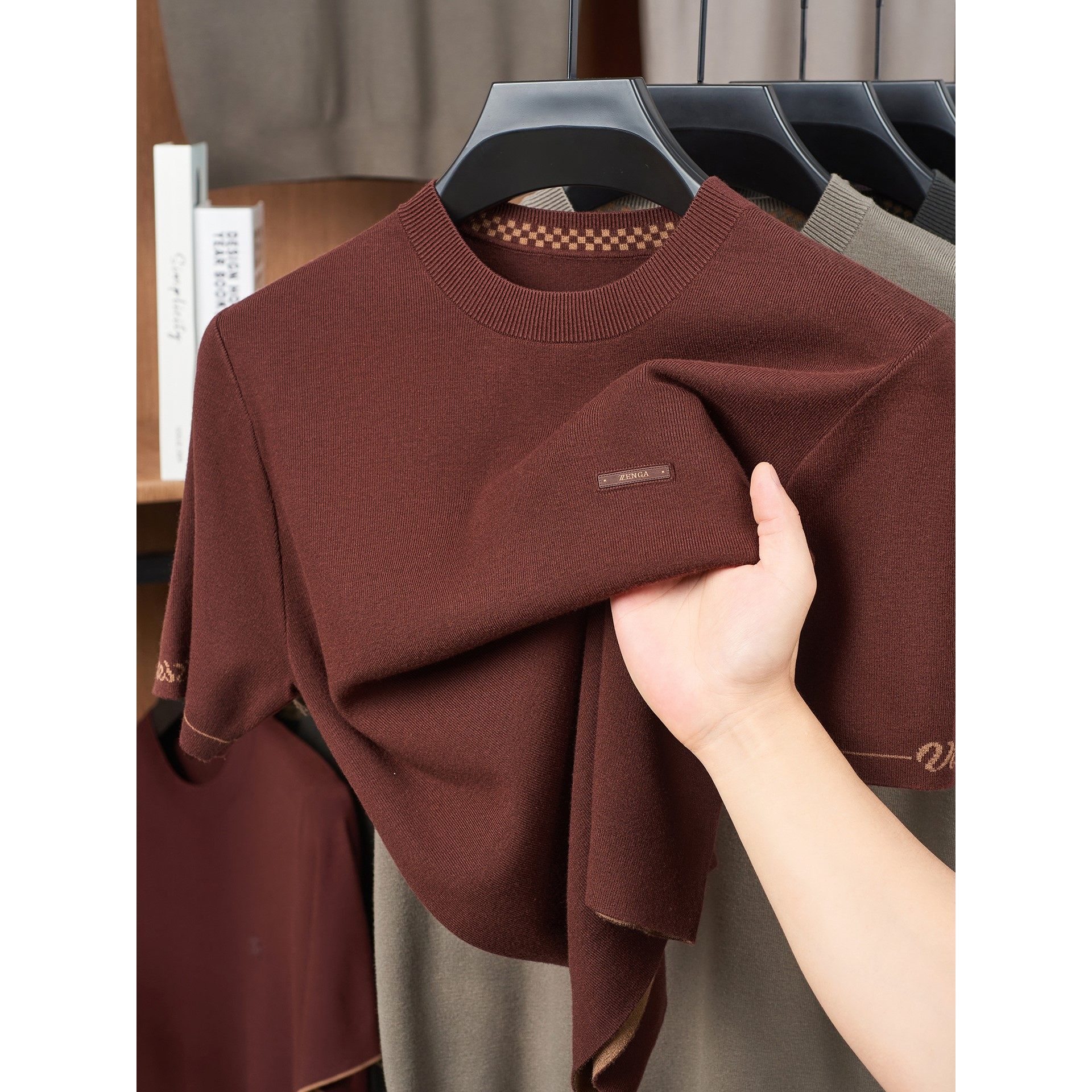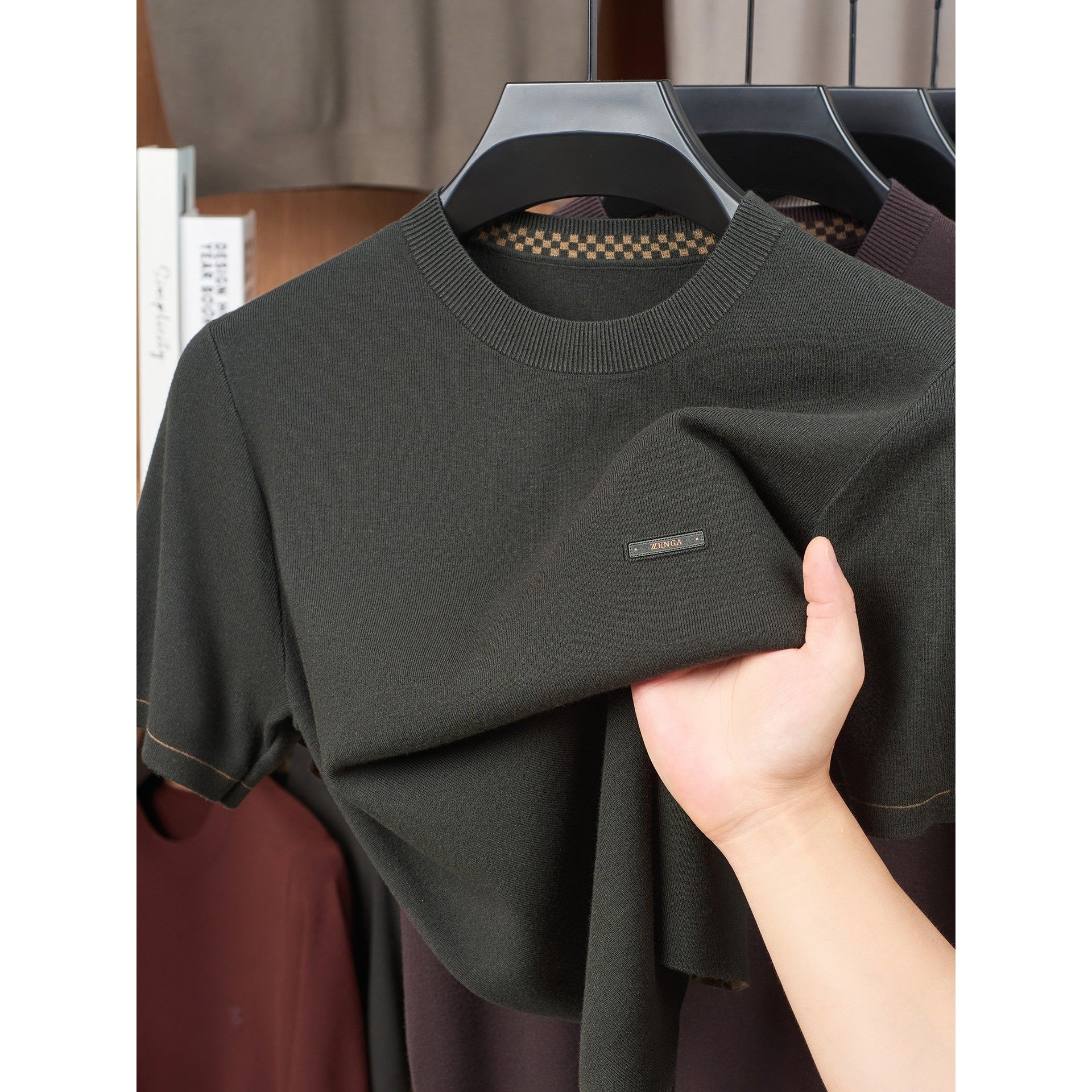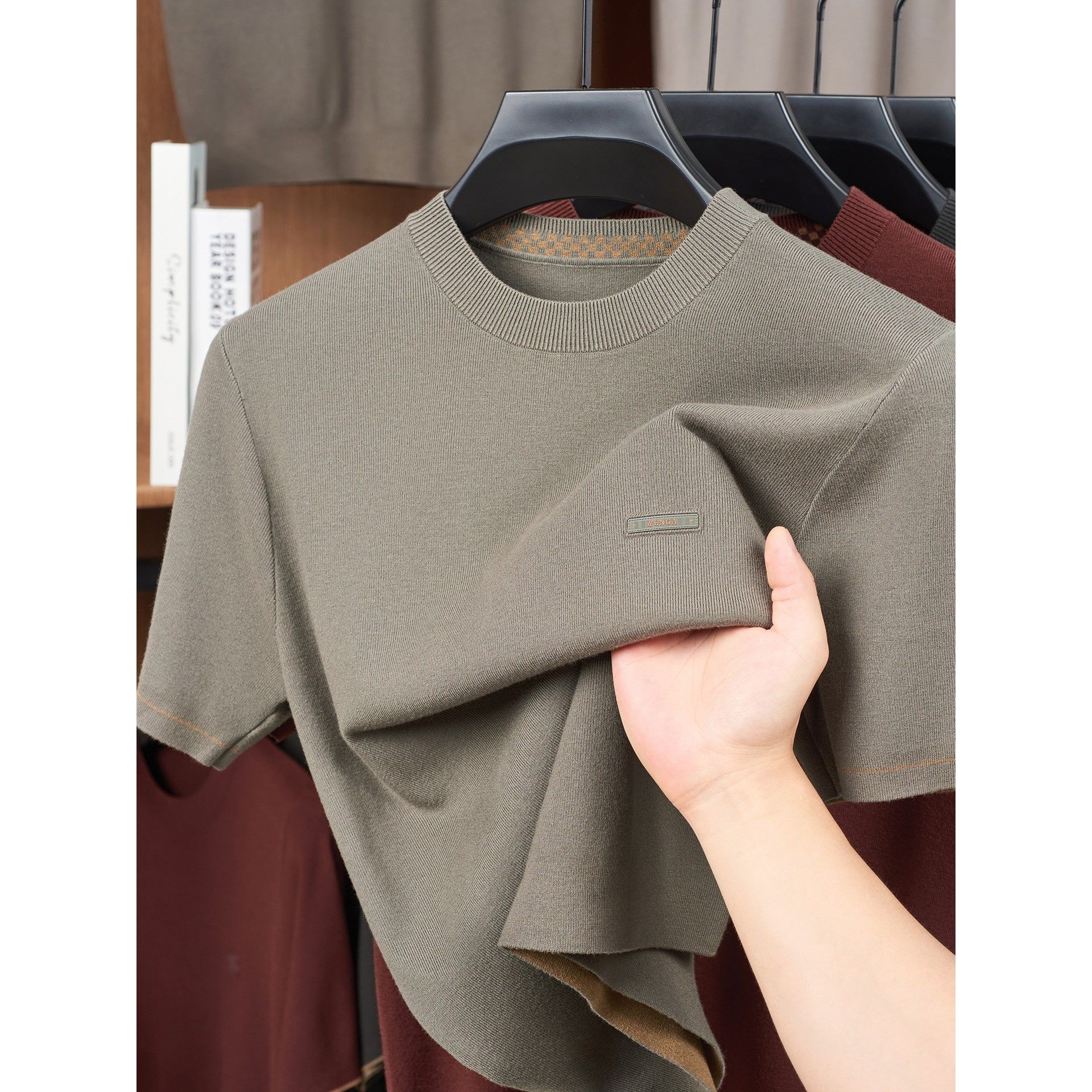 高端男士圆领针织衫毛衣休闲百搭潮流打底衫短袖t恤纯色上衣春秋