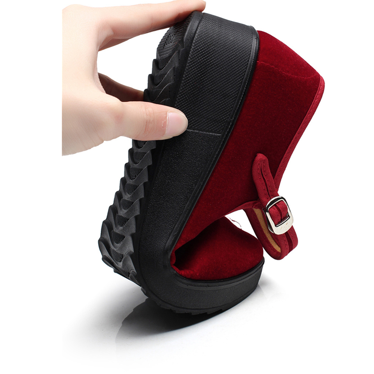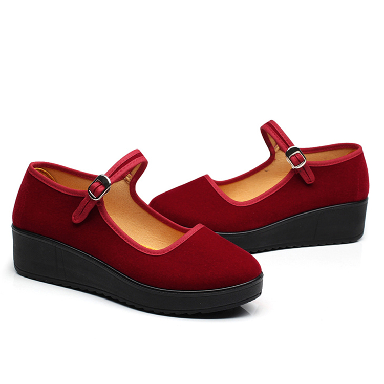 老北京布鞋女 坡跟黑色工作鞋职业厚底浅口一字扣带女鞋单 酒店鞋