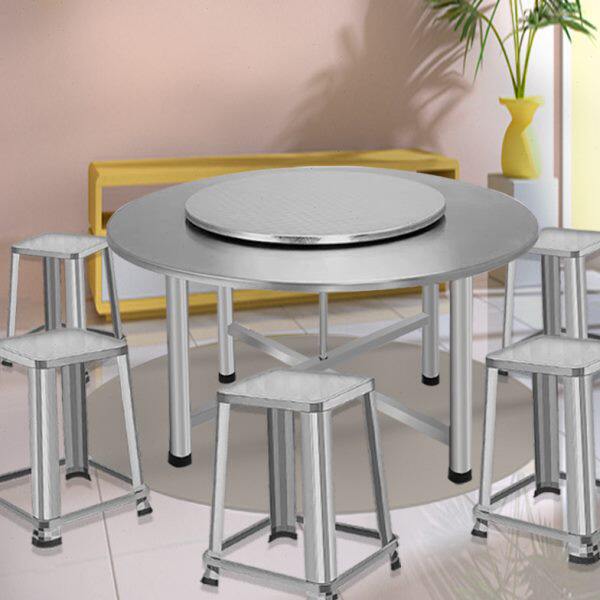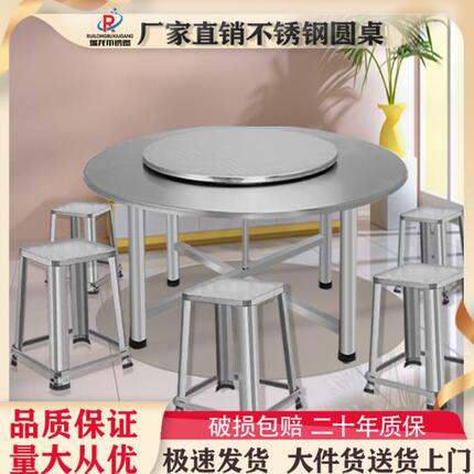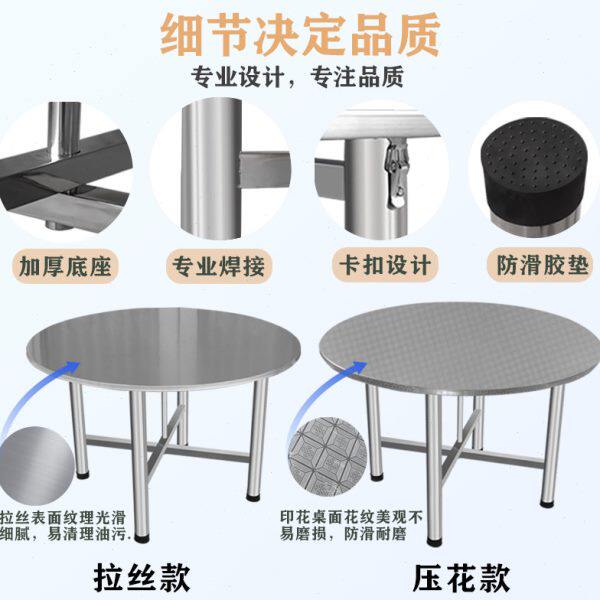 桌不锈钢大圆桌便携转盘吃饭家用分体圆可折叠圆桌餐桌带户外小台