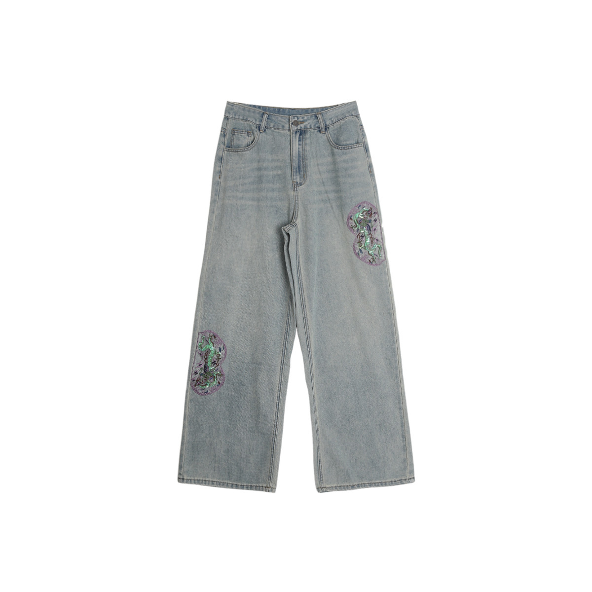 西町村屋中式绣花宽松直筒牛仔裤