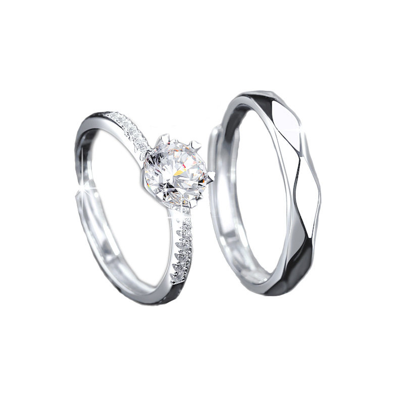 新款莫桑钻戒指六爪经典莫桑石情侣对戒结婚礼物仿真钻戒一件代发