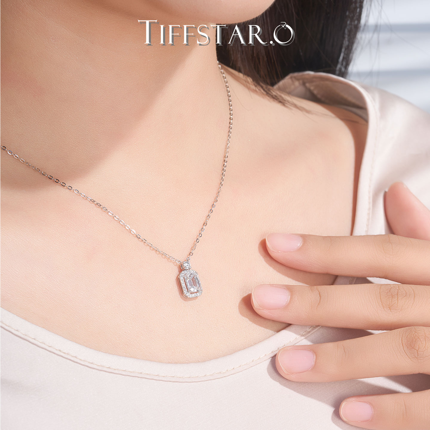 蒂芙星钻铂金PT950培育钻石项链满钻祖母绿切吊坠轻奢百搭锁骨链