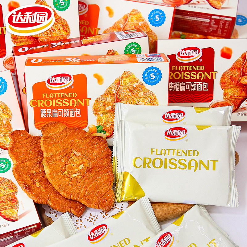 达利园扁可颂面包焦糖薄脆牛角包中式早餐休闲零食压扁饼干108g