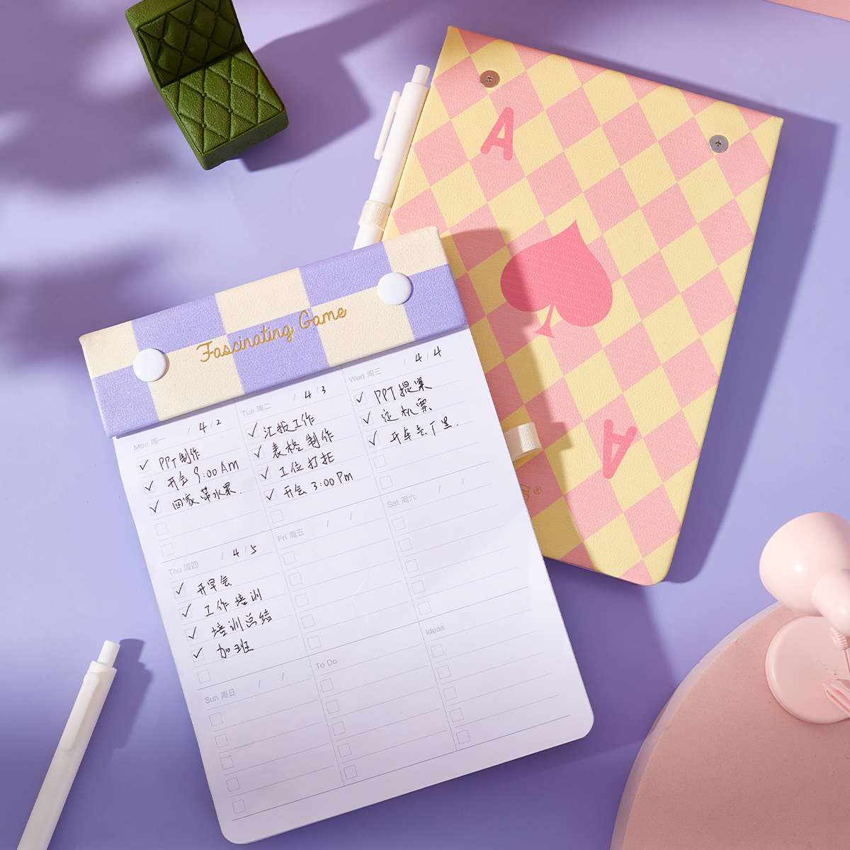 莱恩纸品板夹便签本to do list每日计划日程本拍纸本可撕可换替芯记事本周计划ins风记录笔记本子方格便签纸