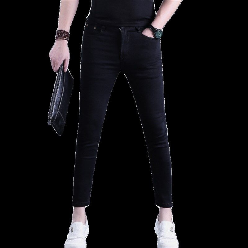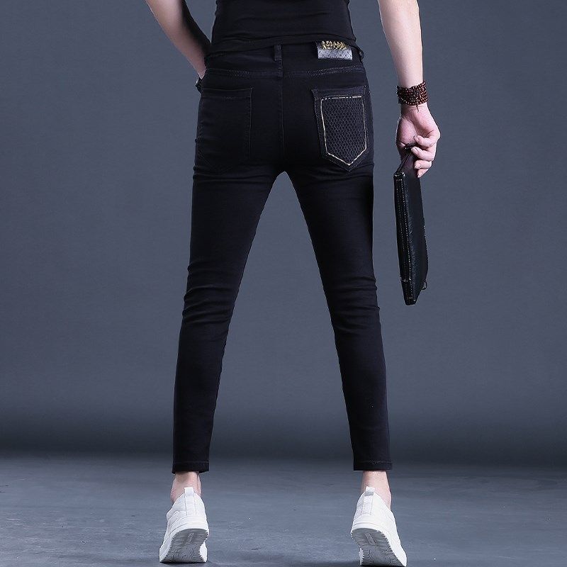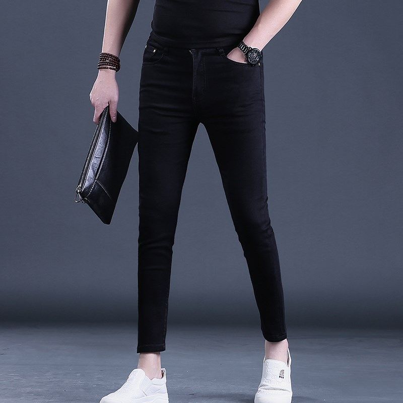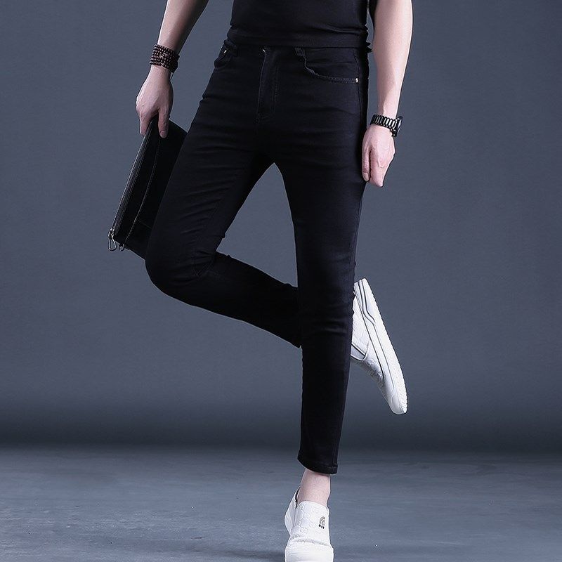 九分裤男士牛仔裤韩版潮流修身小脚纯黑色9分休闲裤24新款男裤子
