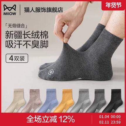 猫人秋冬中筒男士袜防滑运动新疆棉袜长筒休闲商务透气吸汗短袜子
