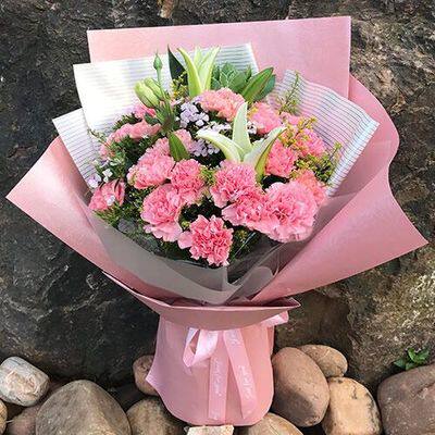 海南海口三亚鲜花同城速递高档百合康乃馨花束礼盒生日配送上门店