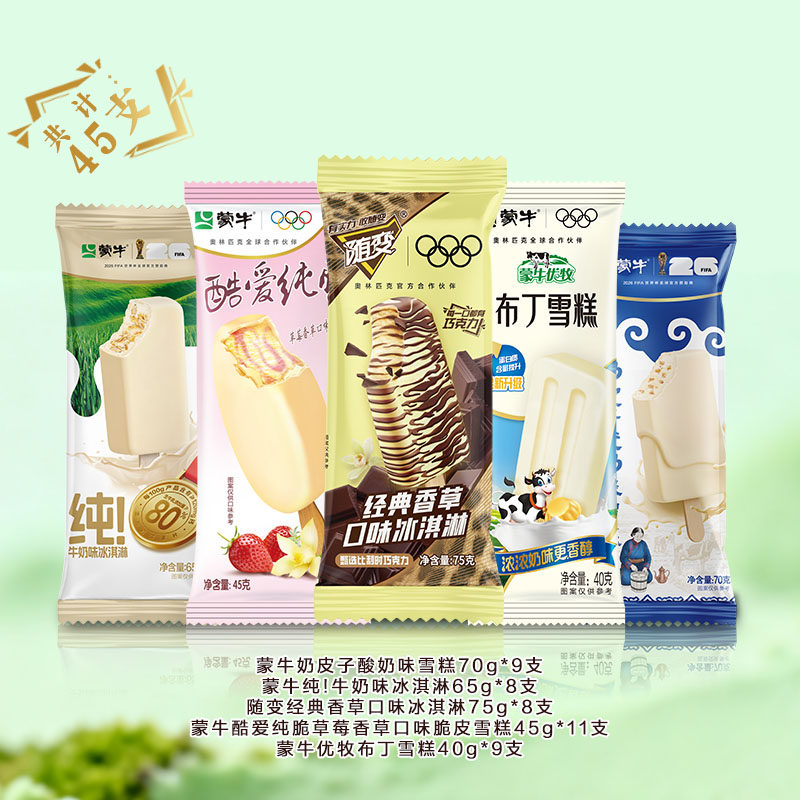 蒙牛冰淇淋经典香草奶皮子草莓牛奶小布丁45支组合冰激凌雪糕