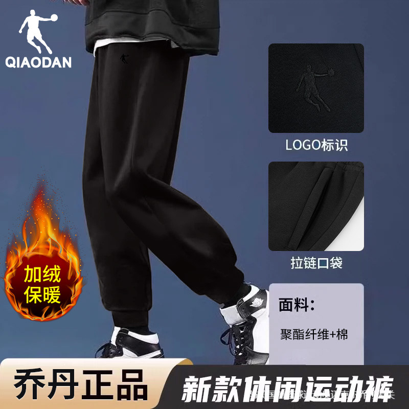 乔丹加绒棉裤男2025新款冬季保暖长裤束脚裤子女正品运动卫裤男裤