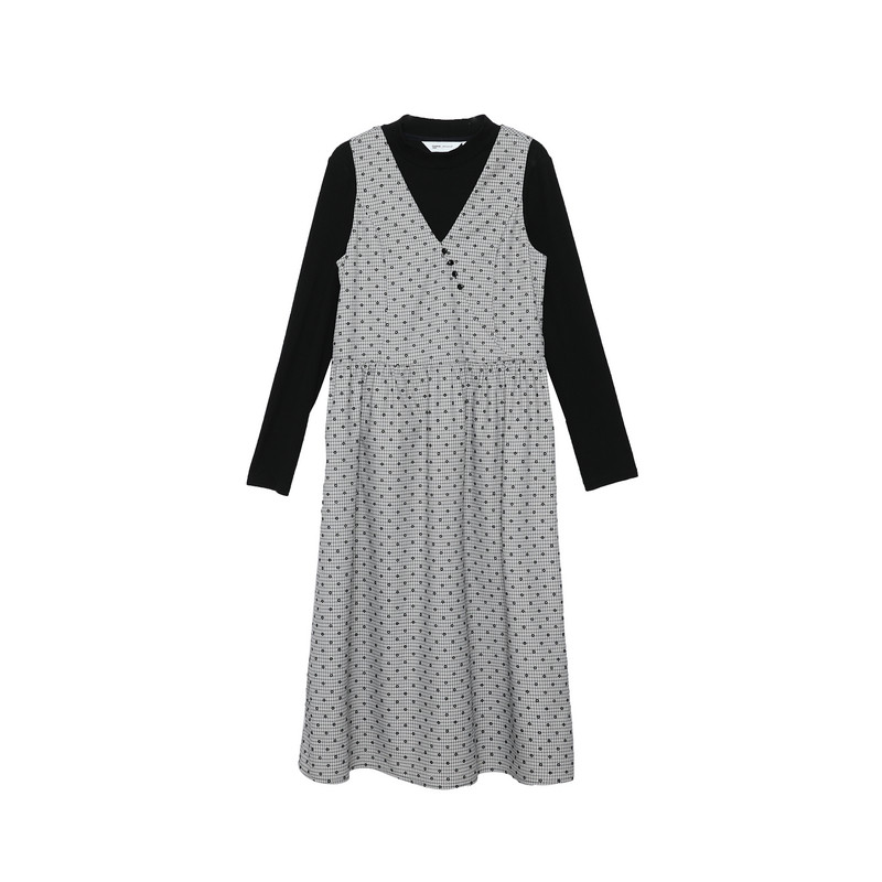 MOVEUP幻走2024冬季新款.FUN系列两件套立体小花分割设计师连衣裙