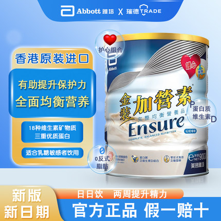 雅培Ensure港版金装加营素进口成人中老年高钙奶粉均衡营养粉900g