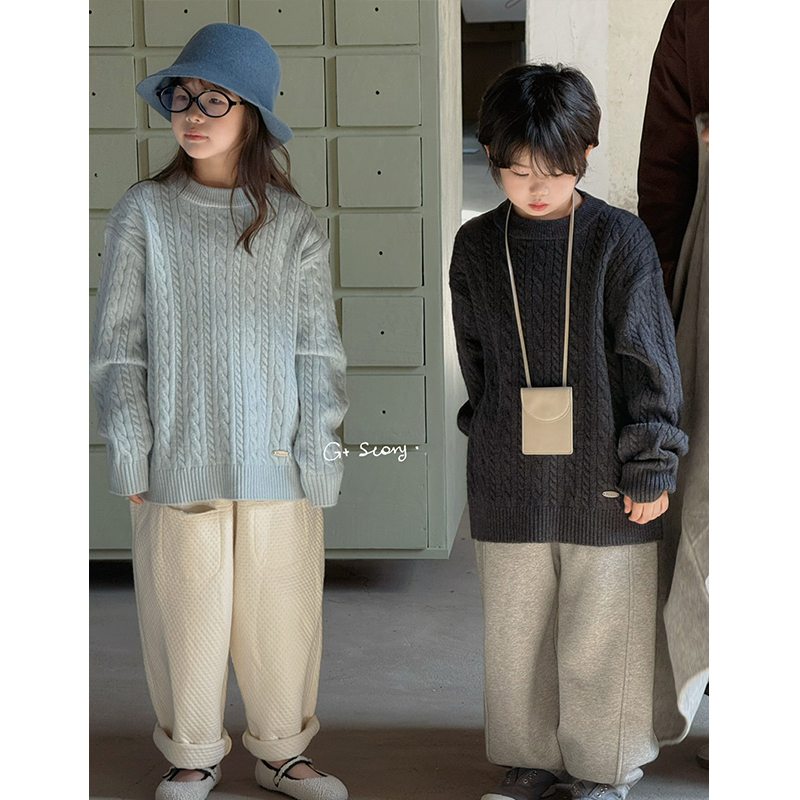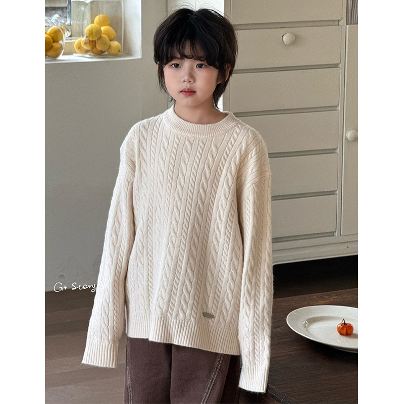 G+童装2024冬季新款男女中大童韩版百搭羊绒混纺麻花针织毛衣6898