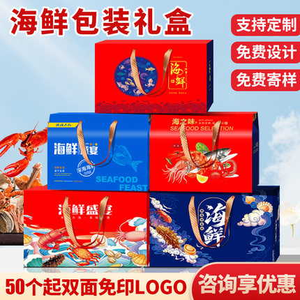 海鲜礼盒包装空盒高级感干货鱼虾海参大闸蟹高档礼品盒定制做LOGO