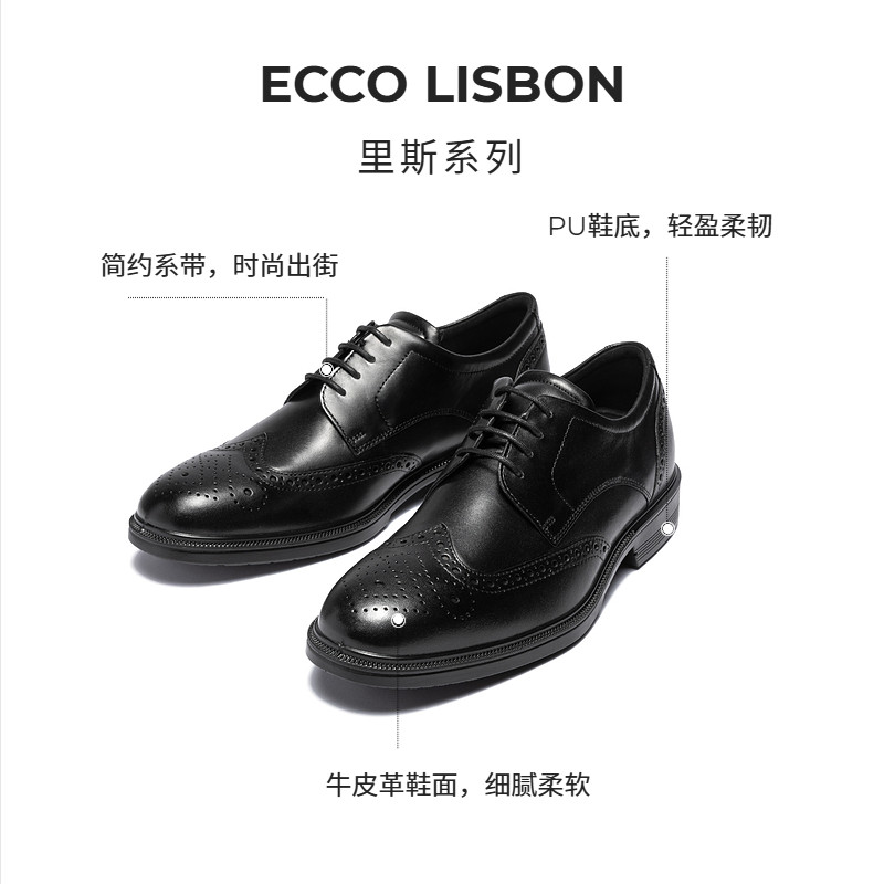 ECCO爱步皮鞋男 春夏布洛克真皮正装鞋德比鞋 里斯622104 622164