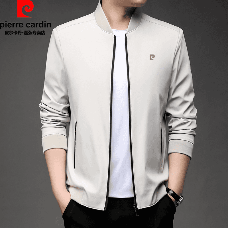 皮尔卡丹春秋季桑蚕丝外套夹克男中年爸爸商务休闲棒球领茄克上衣