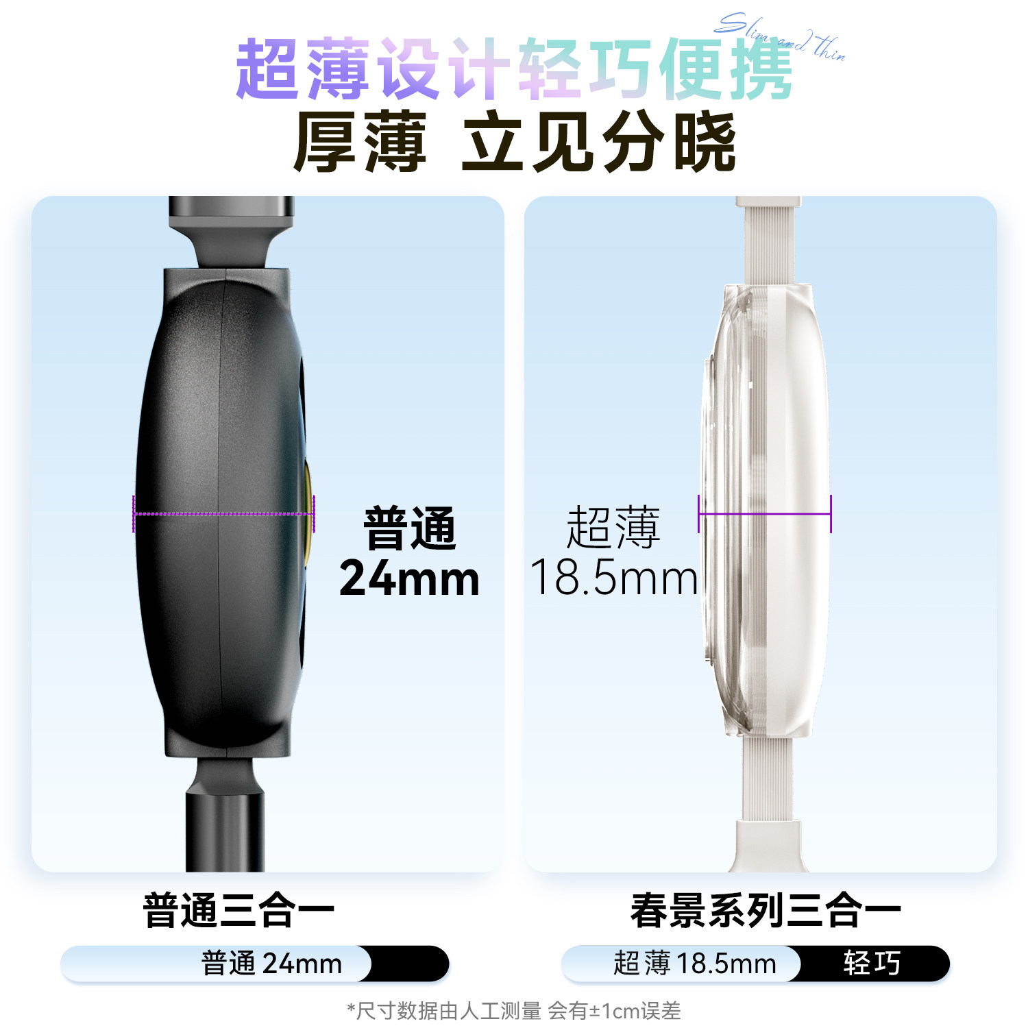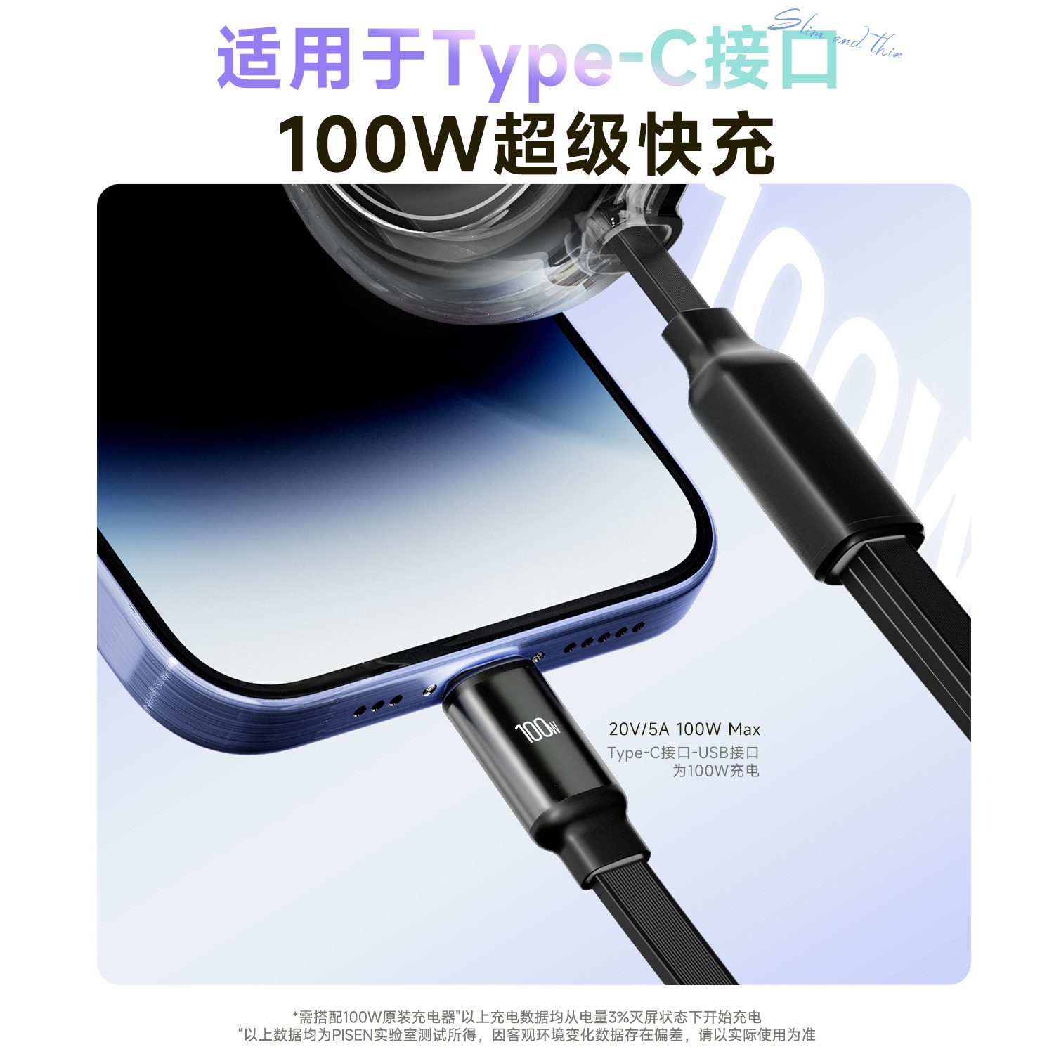 品胜三合一伸缩数据线100W快充适用苹果17华为小米安卓iPhone16一拖三Typec手机平板USB多功能车载充电线定制