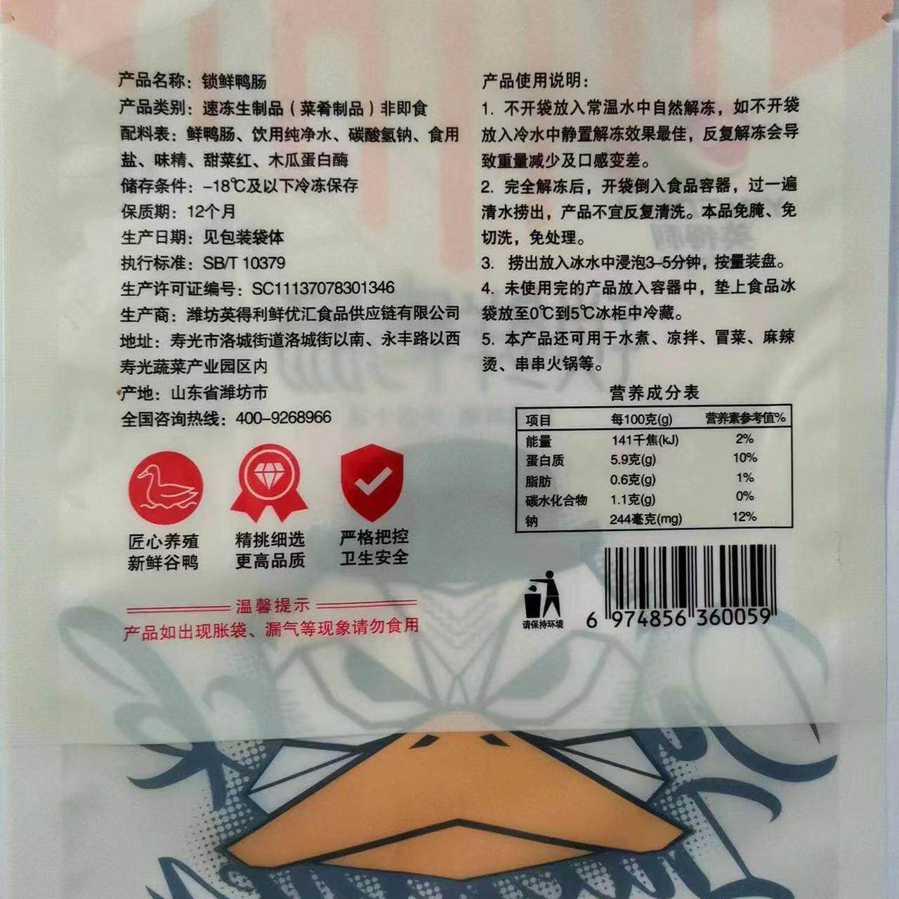 锁鲜鲜脆鸭肠火锅食材豆捞半成品